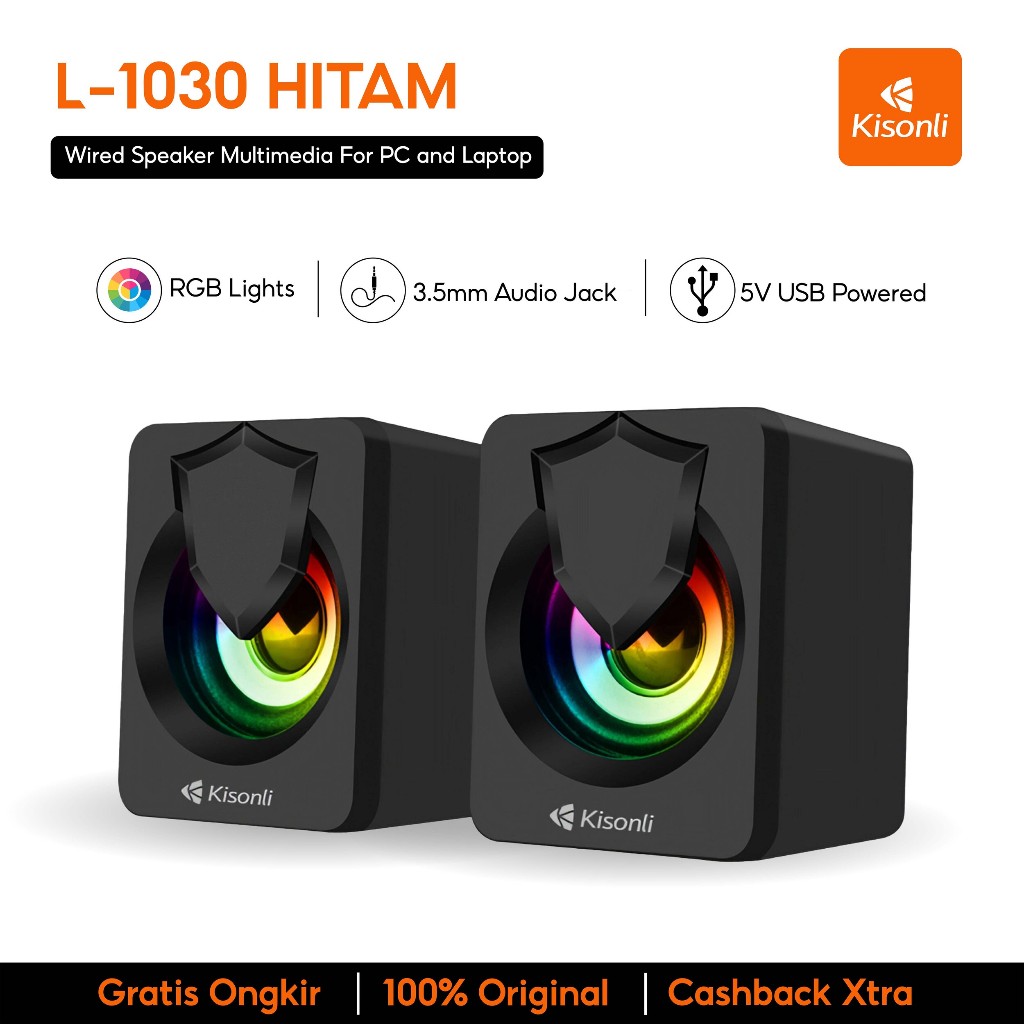 KISONLI - Speaker 2.0 Komputer / Laptop Multimedia Lampu LED L-1030 Hitam